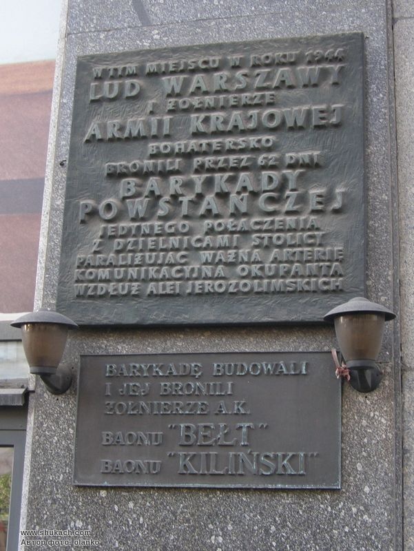 м. Варшава. Меморіальна дошка барикаді повстанців на алеї Єрусалимській.