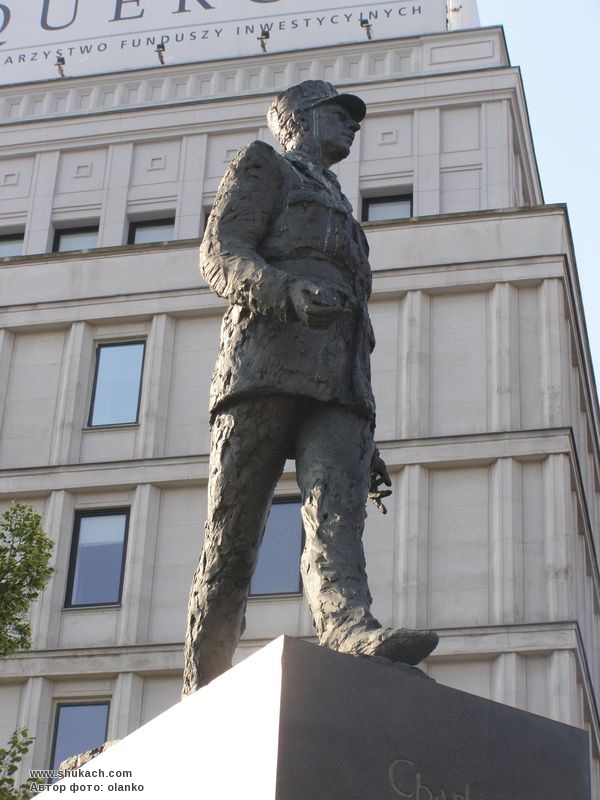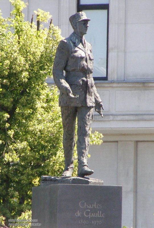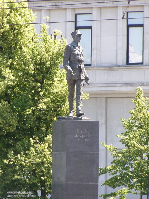 Пам'ятник вшановує пам'ять президента Франції Шарля де Голля. Генерал одягнений у військову форму і кепі. Варшавська статуя є копією пам'ятника, відкритого в 2000 році в Парижі на Єлисейських полях, але він трохи вищий і виготовлений з кращого матеріалу.
