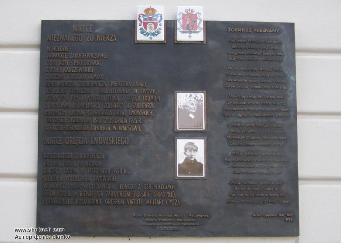 На стіні будинку комендатури Варшавського гарнізону на пл. Пілсудського відкрито пам’ятну дошку Ядвізі Заругевичовій, матері загиблого воїна. На дошці — біографічні довідки Ядвіги Заругевичової та її сина Констанція, поема Артура Оппмана «Невідомий солдат» та герби Варшави і Львова.