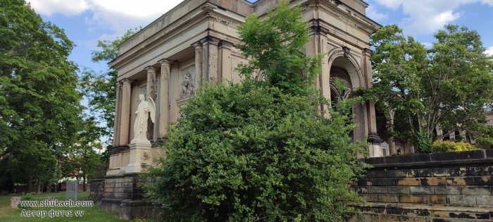 У центрі комплексу в стилі неоренесансу, спроектованого архітектором і студентом Земпера Робертом Віммером, була 20-метрова монументальна купольна споруда, у якій містився траурний зал. Він був багато прикрашений .