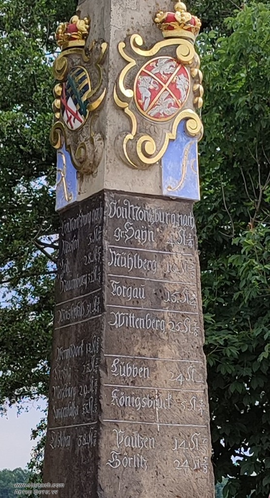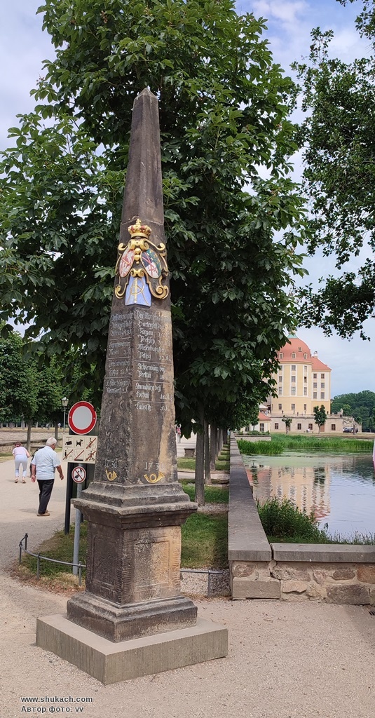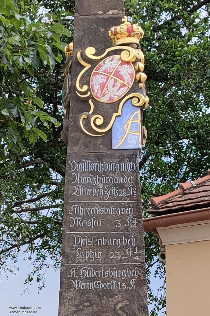 Дві колони саксонських поштових миль встановлені у 1730 р. біля Моріцбурга. Реставрація у 2007 р. Саксонська поштова колона — це віха , яка вказує відстані та час ходьби . Дизайн колон змінюється залежно від відстані яку вони представляють, вони можуть бути у формі обеліска , стародавнього герба або стели . Колони римських миль були моделлю.