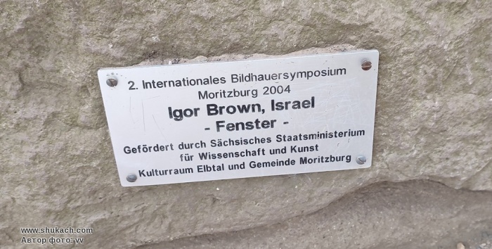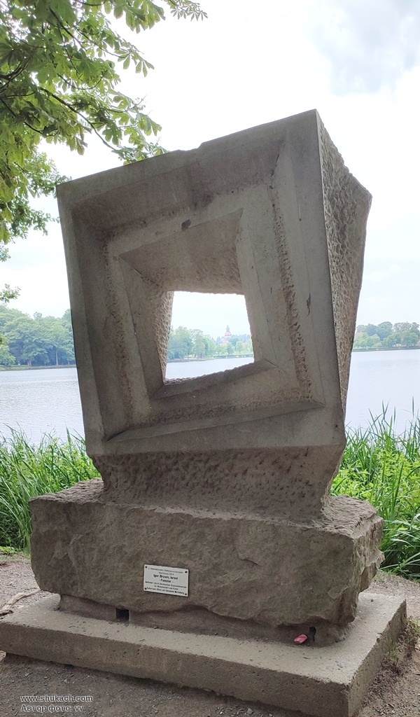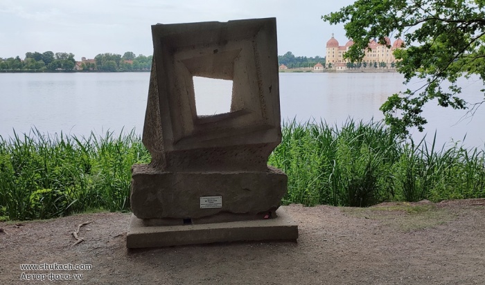 Скульптура „Fenster“ (Skulptur „Fenster“) автора з Ізраілю. Казковий замок Моріцбург виглядає біля скульптури по іншому.