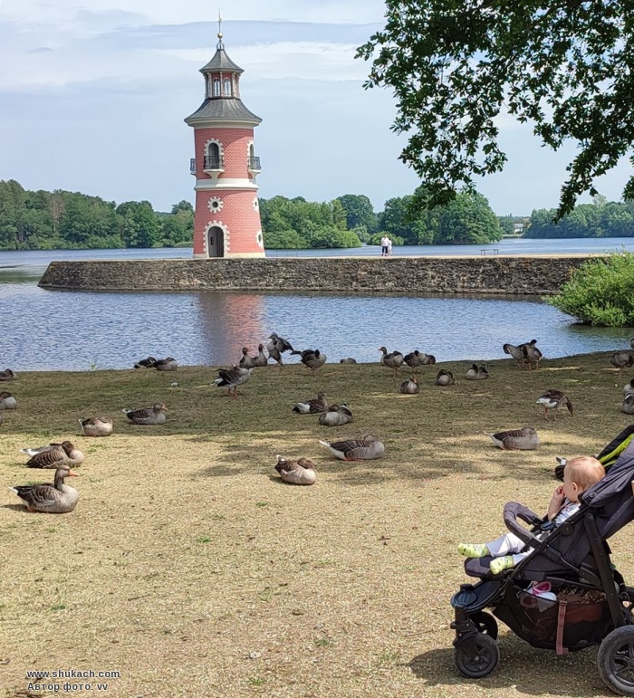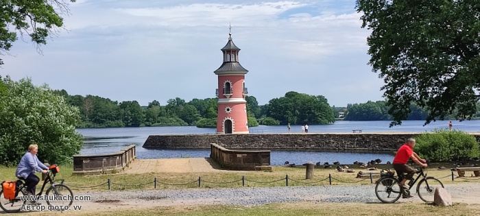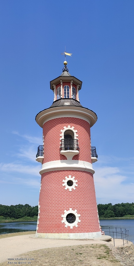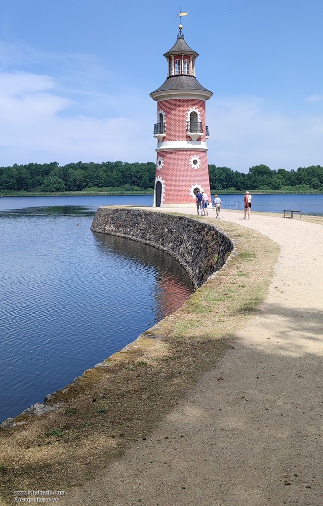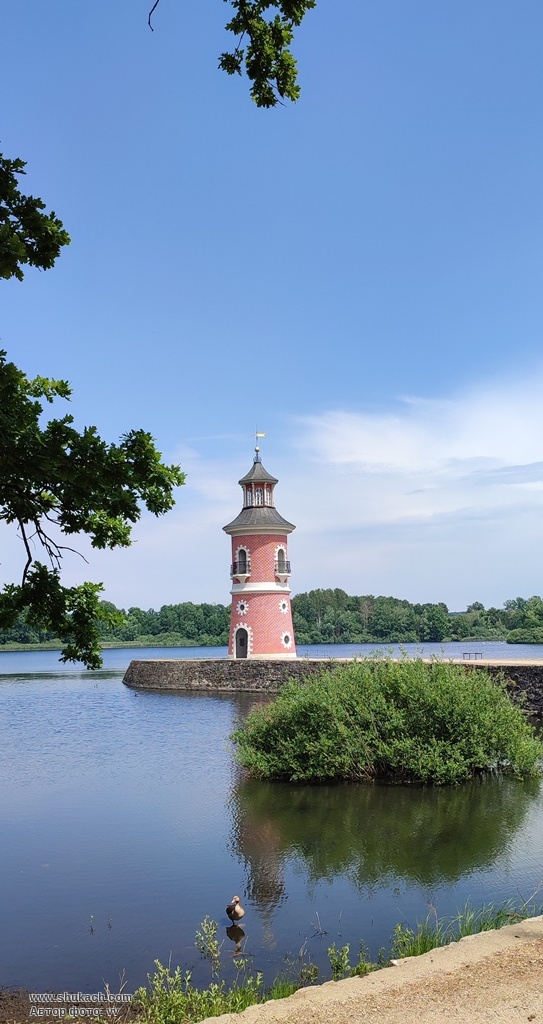 Будівля була створена наприкінці 18 століття як частина фону для імітації морських битв. Це єдиний маяк, побудований для цієї мети в Німеччині. Маяк знаходиться в районі Моріцбург на західному березі річки Нідерес Гросштайх.