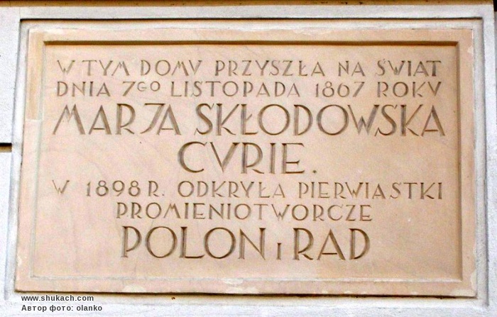 м. Варшава. Меморіальна дошка Марії Склодовській-Кюрі.