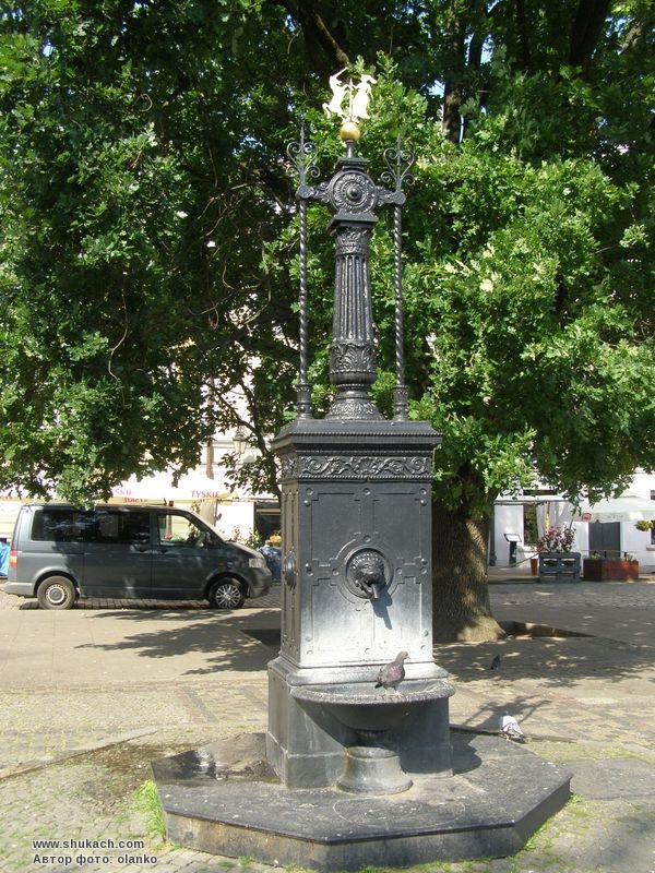 Еклектичний чавунний колодязь 2-ї половини дев'ятнадцятого століття, встановлений тут приблизно в 1957 році. Його увінчує герб Нового міста – діва з єдинорогом.