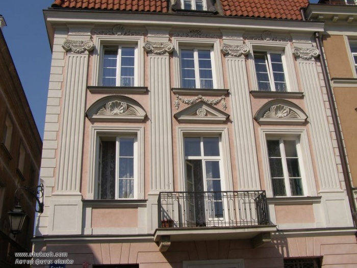 Двоповерховий, тривісний будинок з багатим класицистичним фасадом був спроектований Якубом Фонтаною, популярним на той час архітектором і будівельником. Фасад був прикрашений іонічними пілястрами і фронтонами над вікнами першого поверху, трикутними посередині і арочними з боків.