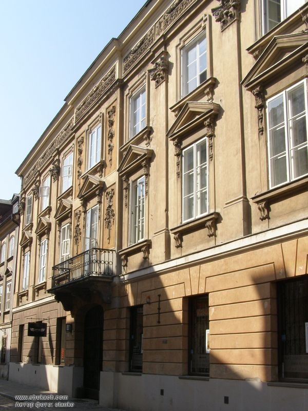 Прибутковий будинок, що стояв на подвійній ділянці, мав три поверхи. Семиосьовий фасад прикрашали пілястри, трикутні фронтони над вікнами і балкон з кованою балюстрадою. У 1944 році він був серйозно пошкоджений. Однак частково збереглися стіни вісімнадцятого століття і деякі деталі, включаючи вищезгаданий балкон. Його реконструкцією в 1951-1953 роках керувала архітектор Анна Шурмак. На жаль, на фасаді вже немає герба Лабендзя Глушинського.