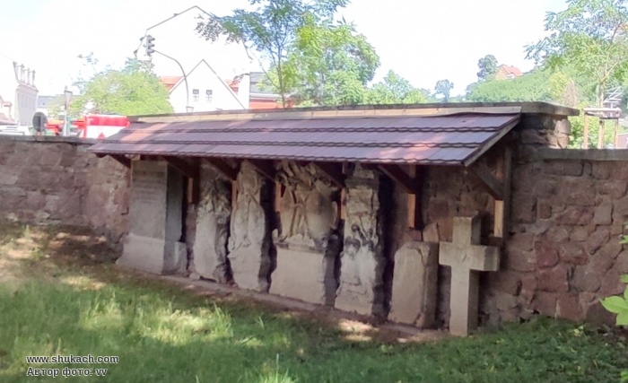 Архітектор Бернер, при створенні меморіалу війни включив у проект церкви елементи різних релігій. Є вази з єврейськими мотивами, хрести за зразком грецької православної церкви, східний дизайн тріумфальної арки та цитата з Будди.