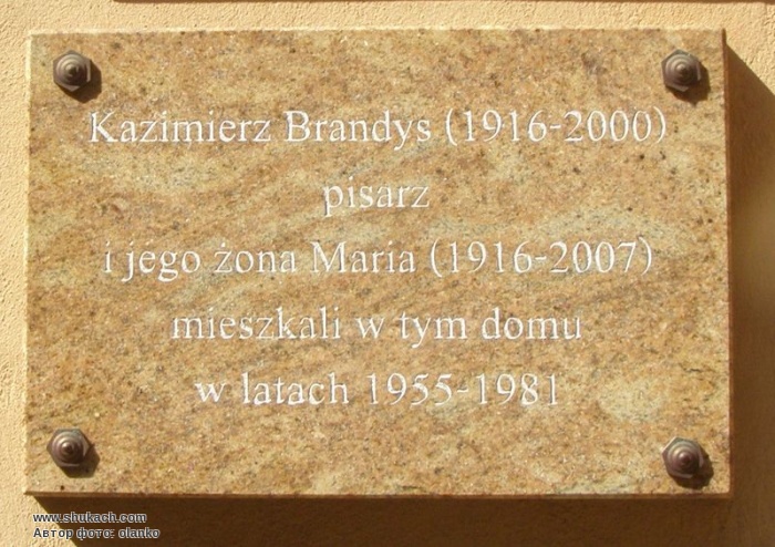 Встановлена на честь письменника Казімежа Брандиса та його дружини Марії, які жили в цьому будинку у 1955-1981 роках.