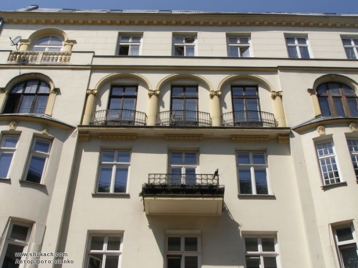 Кам’яниця була зведена в 1911-1912 роках в стилі раннього модернізму, майже близнюк свого сусіда, з широко рознесеними еркерами. У верхній частині фасаду профільовані напівколони з капітелями іонічного ордеру. Дуже цікавим елементом будинку є дві напівколони, розміщені біля вхідних воріт. Капітелі напівколон прикрашають дві скульптури – дівчинка, яка тримає голубів, і хлопчик, який тримає виноград. В даний час будинок має житлову функцію.
