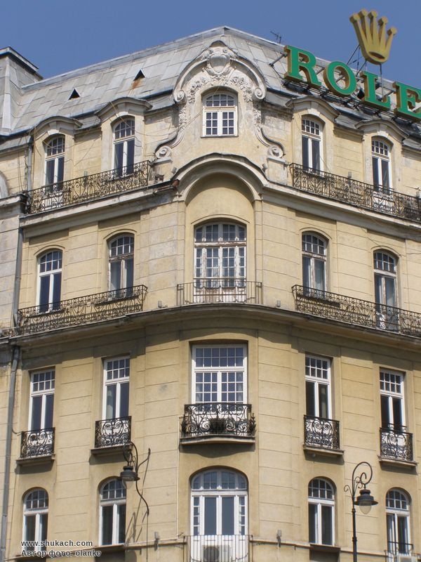 Триповерховий будинок був зведений у 1820 році імовірно за проектом архітектора Фредеріка А. Лесселя на замовлення Шимона Манугевича на місці більш давнього двоповерхового будинку. У 1874-1875 роках на замовлення тодішнього власника Казимира Натансона добудований ще один поверх з неоренесансним декором фасаду. У 1913 році будинок був розширений ще на два поверхи за проектом Й.Н.Червінського і В.Геппена.