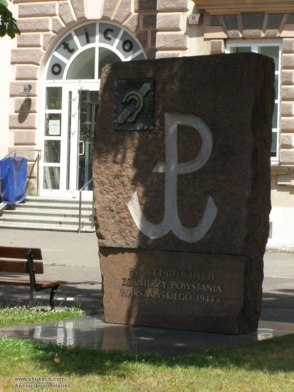 В 1944 році в Варшавському повстанні в складі взводу глухих воювали 29 глухих бійців. На їх честь на території інституту глухонімих встановлений цей пам’ятний знак.