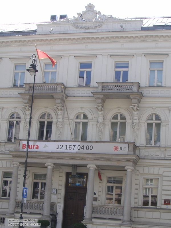 Кам’яниця зведена в 1875-1876 роках за проектом Міхала Добромислава в стилі класицизму. Характерною особливістю будівлі є портик з чотирма колонами, що підтримують балкон на другому поверсі, а над ним чотири каріатиди, що підтримують два балкони на третьому поверсі. У 2004 році прибутковий будинок був відновлений під керівництвом Анни Ростковської. В даний час тут розміщена амбасада Албанії.