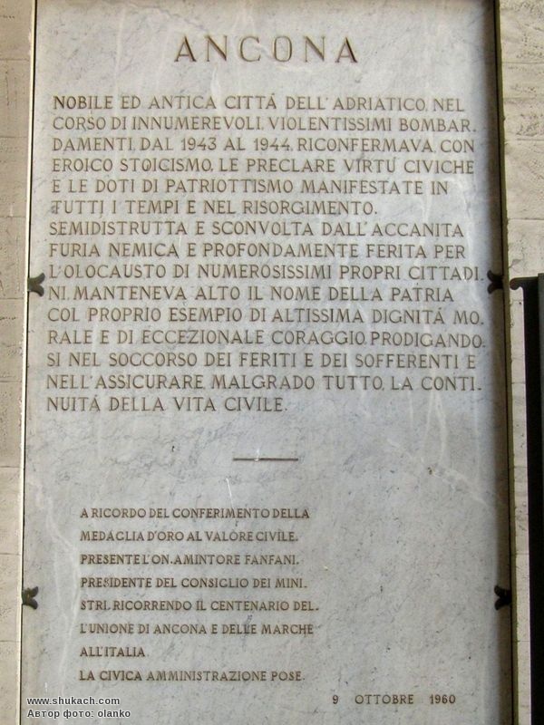 м. Анкона. Меморіальна дошка на честь нагородження міста.