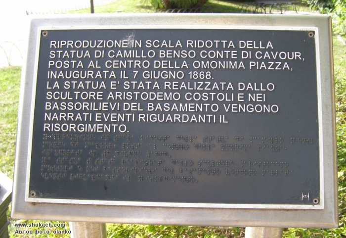 Бронзова міні-копія пам’ятника графу Кавуру встановлена поряд з площею його імені, на якій встановлений пам’ятник. Поруч – табличка з поясненням, в тому числі шрифтом Брайля для незрячих людей.