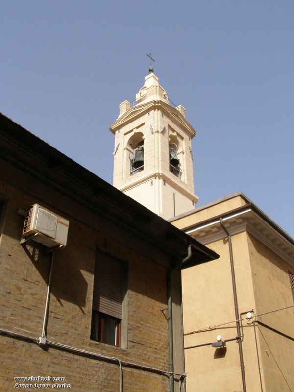 Рік будівництва невідомий, але церква вперше згадується в документі від 19 березня 1051 року. Церква складається з великої зали, розділеної на три нефи з різною висотою стель та двома великими колонами. Головний вівтар ізольований у центрі пресвітерію; два малих вівтаря приставлені до торцевих стін бічних проходів. За вівтарем вертикально зігнута стіна прикрашена фрескою, що зображує Христа на троні між двома мучениками роботи Джуліо Кармінаті.