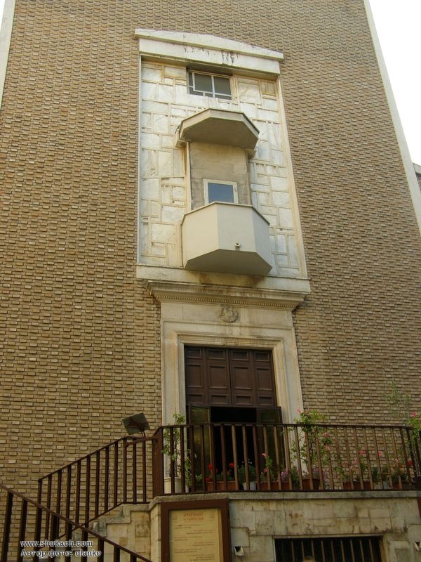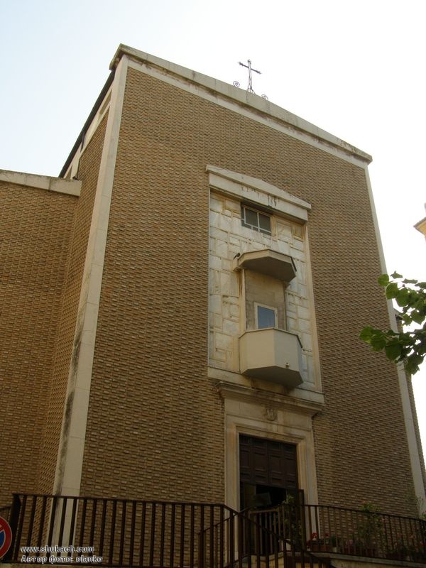 Ззовні стіни облицьовані звичайною цеглою, розташованою відповідно до малюнка, який виділяє окремі елементи, створюючи різні лінії тіні. Фасад розділений на три смуги, що відповідають внутрішнім нефам, у кожній є вхід, увінчаний вікном. Головний вхід обрамлений кам'яним порталом.