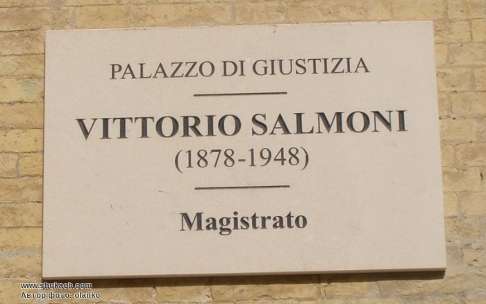 Встановлена на стіні палацу юстиції на честь судді Вітторіо Салмоні, який після прийняття расових законів (1938-1939) був виключений з професії і змушений був переховуватися, щоб не зазнати депортації.