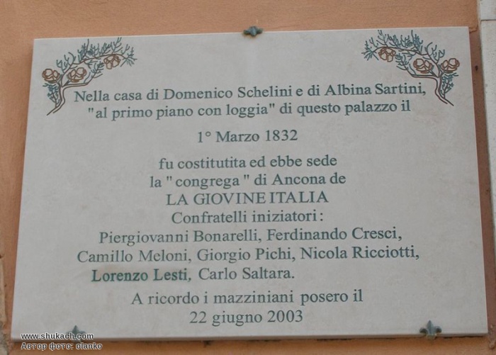 м. Анкона. Меморіальна дошка міському товариству «Молода Італія».
