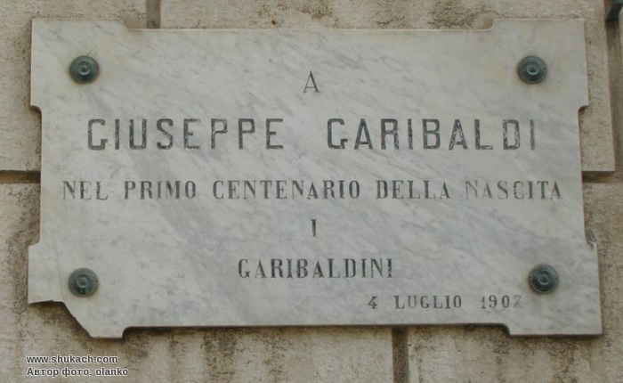 Нижче ще одна, більш скромна дошка, яка встановлена в день 100-річчя с дня народження Гарібальді, 4 липня 1907 року.