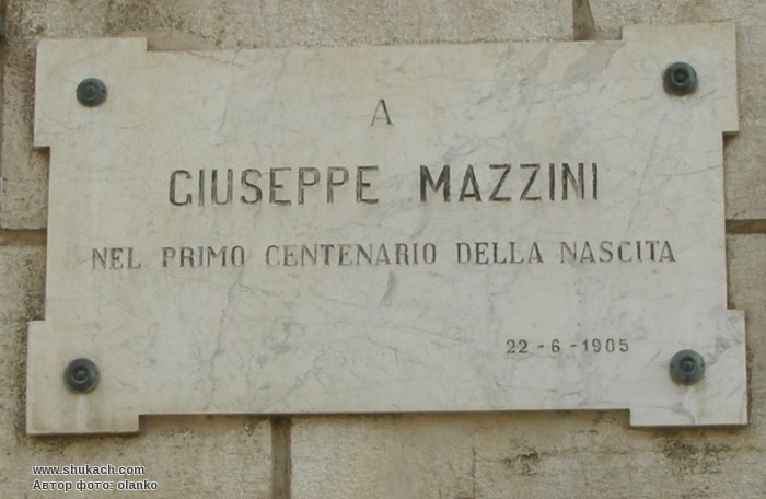 Нижче ще одна, більш скромна дошка, яка встановлена в день 100-річчя с дня народження Мадзіні, 22 червня 1905 року.
