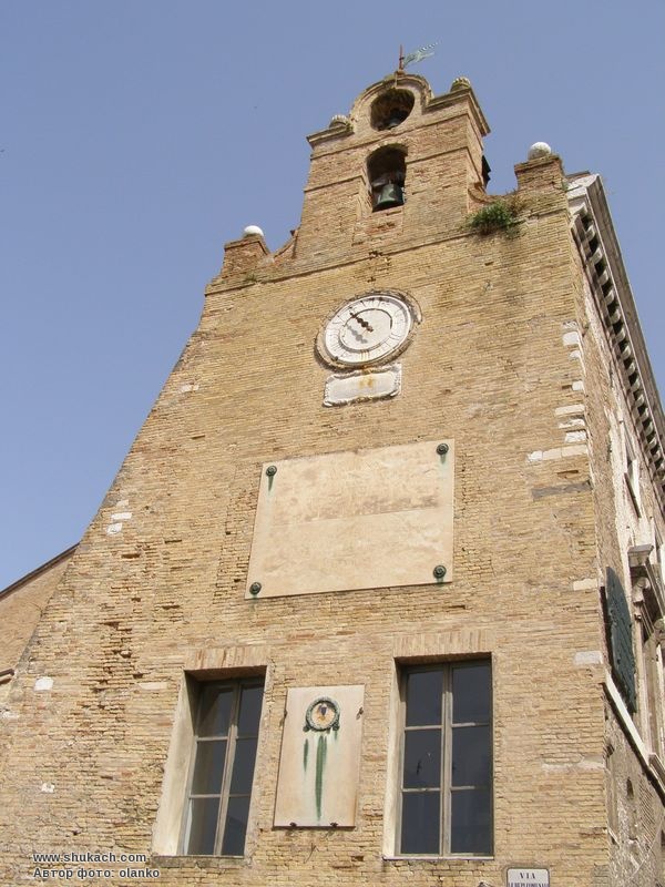 На бічній стіні Палаццо дельї Анціані (Палацу старійшин) встановлений годинник, який має всього одну стрілку, а сам циферблат розділений на шість годин, а не на дванадцять, як всі ми звикли. Годинник насправді римського типу, коли доба відраховувалась від так званої «Ave Maria», тобто в кінці сутінків, до того ж моменту наступного дня. На початку дня дзвонили церковні дзвони, і з цієї деталі народилася приказка «Suona l'Ave Maria». У цьому часовому проміжку день ділиться на 6 годин (замість 12), і цей період повторювався 4 рази. Таким чином, єдина стрілка годинника робить 4 обороти за 24 години. Ця система хронометражу була створена церквою в 1200 році і діяла на території сучасної Італії до приходу Наполеона.
