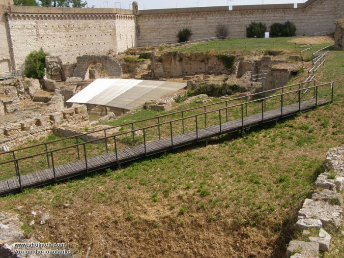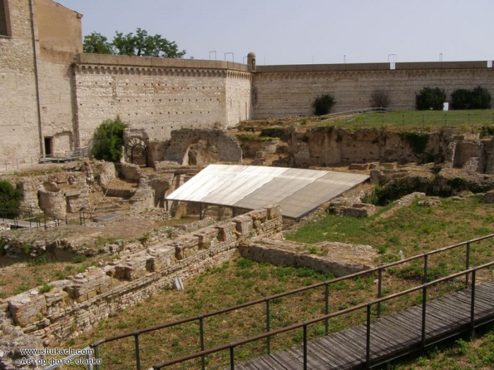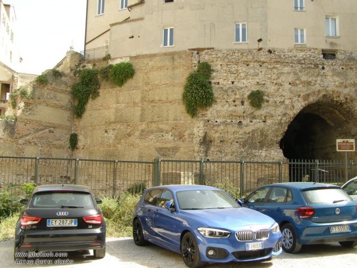Римський амфітеатр Анкони було побудовано епоху Августа наприкінці I століття. до н.е., потім модифікований у період Траяна (1 століття н.е.), він стоїть на природній сідловині між пагорбами Гуаско та Капучіні. Він був виявлений на початку 1800-х років, хоча розкопки почалися лише через 100 років.