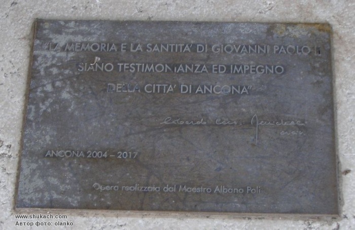 Бронзовий пам’ятник встановлений біля кафедрального собору Анкони у 2017 році на честь Римського папи Іоанна Павла ІІ. Автор – скульптор Альбано Полі.
