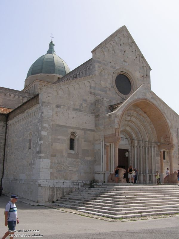 Це одна з найцікавіших середньовічних церков в Італії, в якій романський стиль поєднується з візантійським, що проявляється у плані та у багатьох прикрасах. Він підноситься в сценографічному місці на вершині Колле Гуаско, вже зайнятому Акрополем доричного міста, звідки він домінує над усім містом Анкона та його затокою.