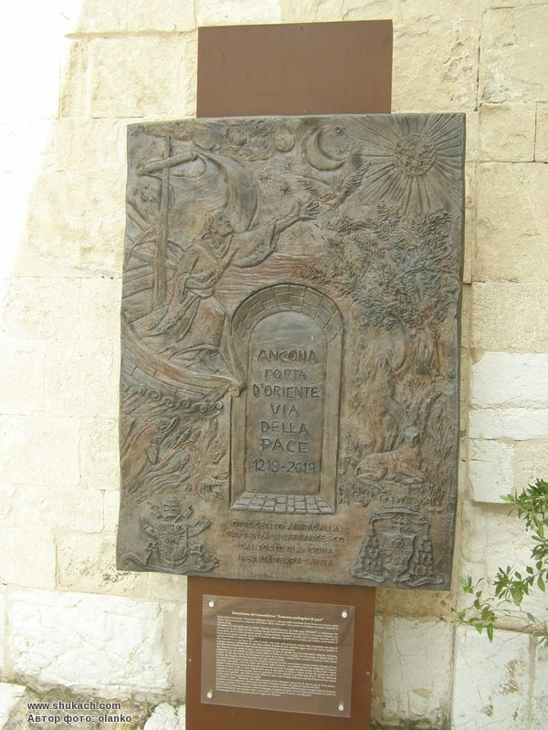 У 1219 році Франциск Ассізький відправився у подорож з порту Анкона до Єгипту. В пам'ять 800-річчя цієї події в житті святого у 2019 році біля кафедрального собору встановлений цей бронзовий барельєф.