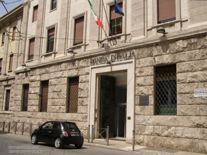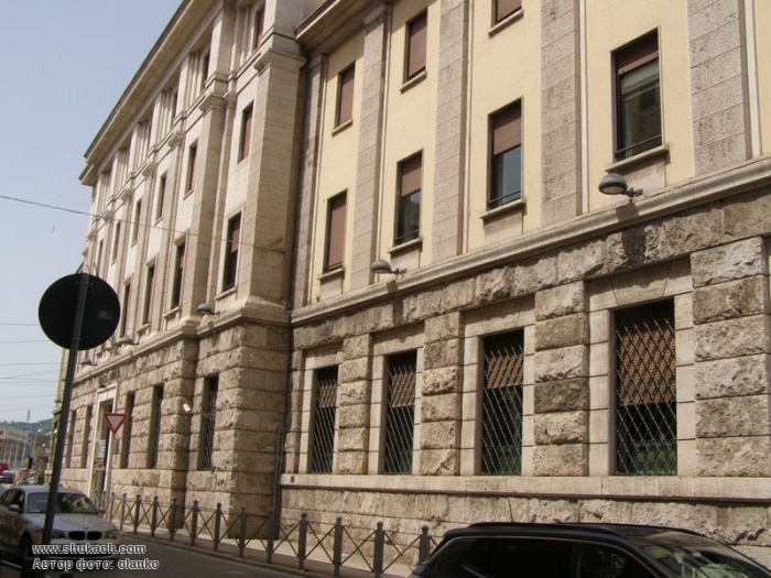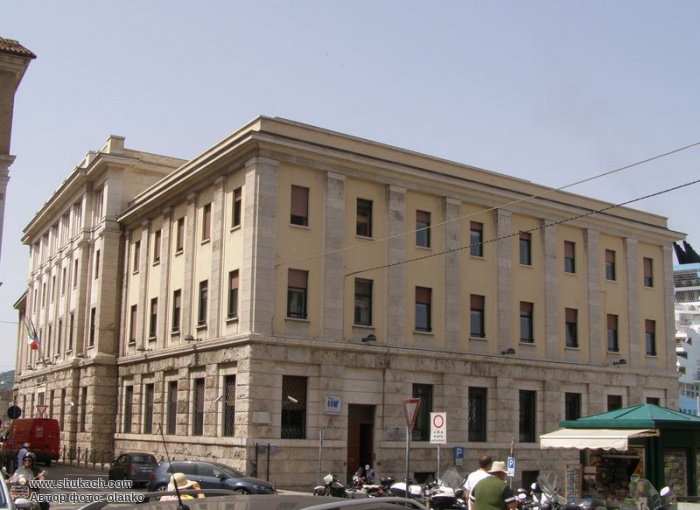 Монументальна будівля, центральна частина якої має чотири поверхи, а два крила – по три поверхи. Фасад першого поверху обкладений блоками необробленого каменю. Тут розміщене регіональне відділення банку Італії.