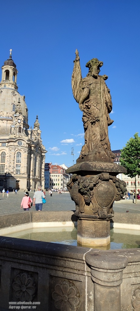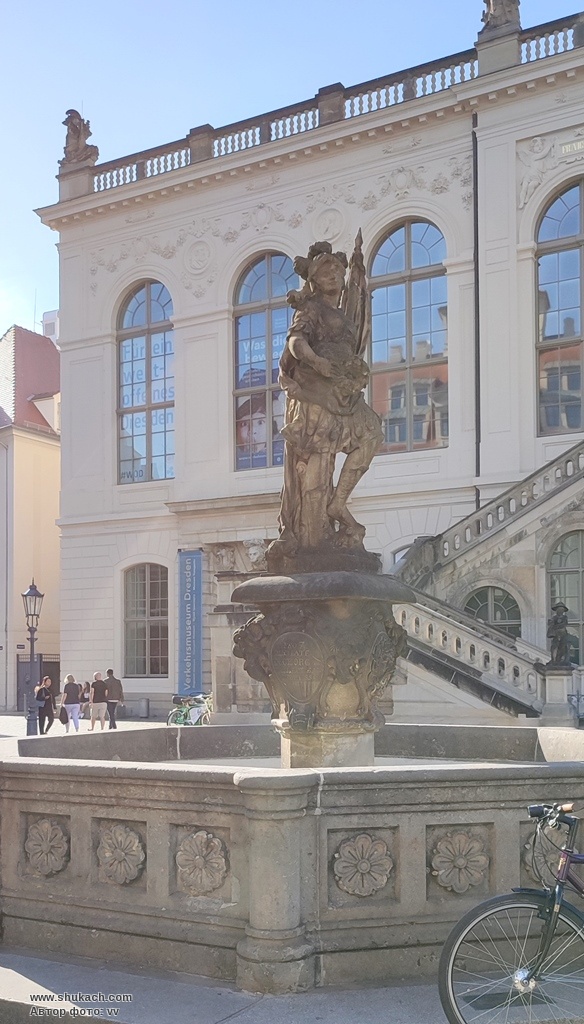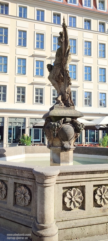 Йоганн Фрідріх Штегер створив восьмикутний басейн в 1616 році. Після закінчення Тридцятилітньої війни Крістоф Абрахам Вальтер створив зображення богині миру Ейрен для основи фонтану в 1649/50 роках. Крім того, фонтан отримав напис Pacem qui amas lege. Irene sum quae Martem cruentum vici, fregi; nunc fontem hunc pacificum aperui ex voto SPOD Ao MBCL. (Ти, хто любить мир, прочитай. Я богиня миру, яка перемогла бога війни Марса; я відкрив цей фонтан миру після обітниці ради і громадян Дрездена в 1650 році. Після переможної проти турків, в якій саксонський курфюрст Йоганн Георг III. брав участь, статую Ейрени 1683 року було замінено новою статуєю Беллони, богині війни , роботи Конрада Макса Зюсснера . Напис також обміняли і прославили войовничого Йоганна Георга III. Тому фонтан також називали Йоганн-Георген-Бруннен або Тюркенбруннен. . У 1969 році скульптор Егмар Понндорф відновив фонтан і додав копію скульптури фонтану.