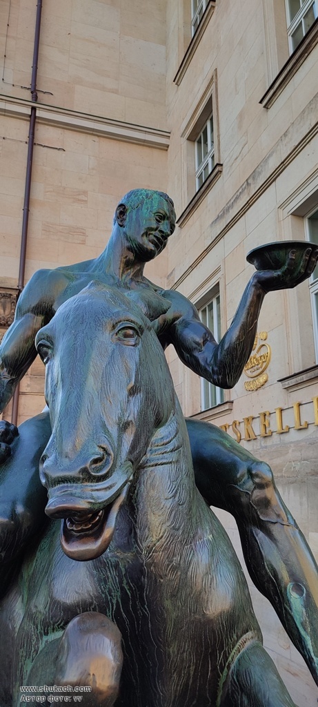 Бронзова скульптура «Вакх верхи на п'яному ослі» створена Георгом Врба в 1910 році.