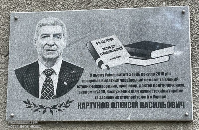 Встановлена на честь видатного українського науковця О.В.Картунова на фасаді будівлі Університету економіки і права «Крок». Урочисте відкриття дошки відбулось 3 червня 2019 року.