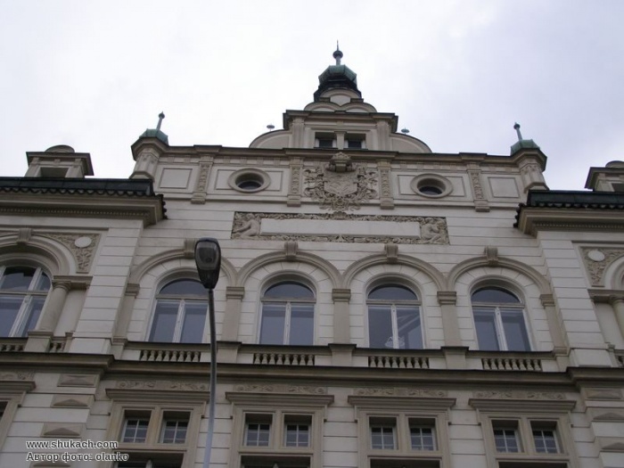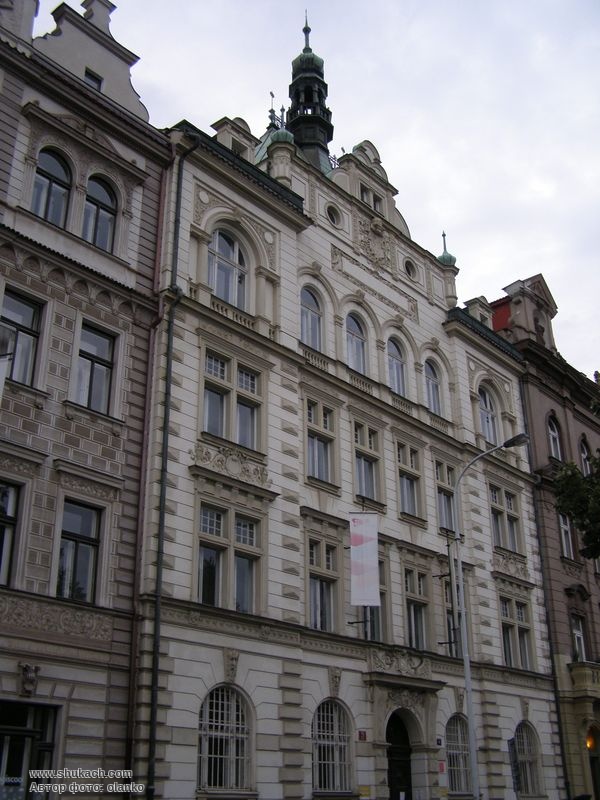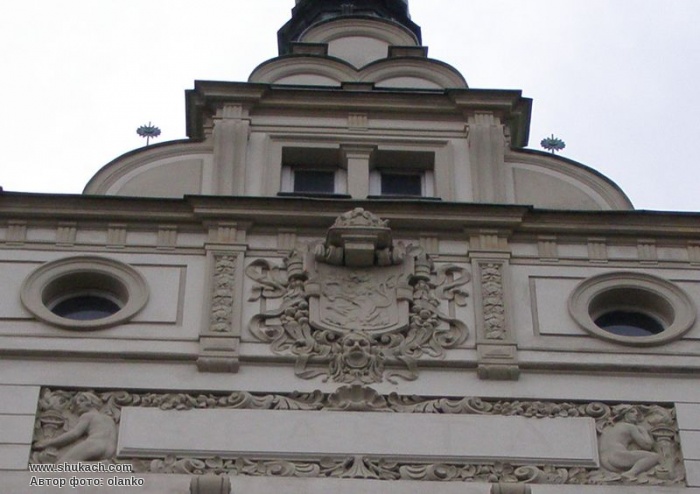 Чотириповерховий прибутковий будинок в стилі модерн зведений на початку 1900-х років. Фасад рустований, прикрашений ліпними панно, барельєфами, балюстрадами; завершений трьома декоративними вежками. Над вхідним порталом – великий маскарон і вензель власника «S» в обрамленні гілок і стрічок.