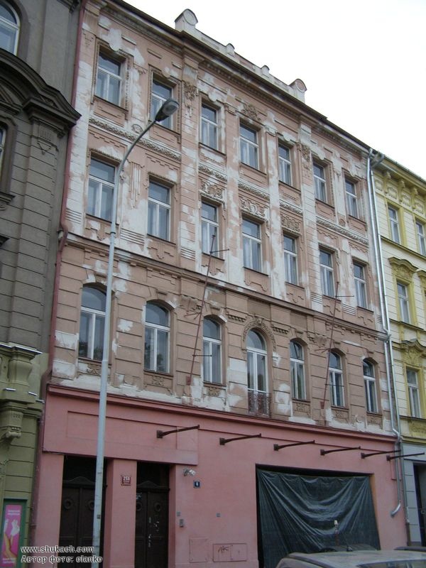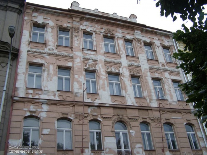 Чотириповерховий прибутковий будинок в стилі модерн зведений на початку 1900-х років. Фасад прикрашений жіночими і лев’ячими маскаронами, смугами орнаменту рослинних мотивів.