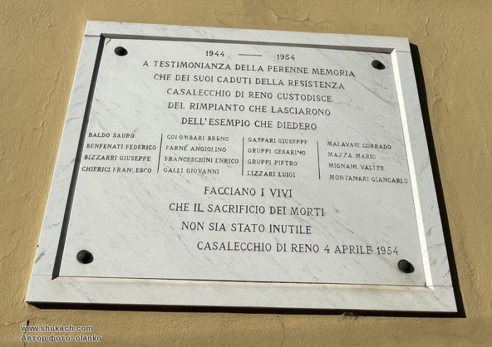 м. Казалеккіо-ді-Рено. Меморіальна дошка загиблим учасникам Опору.