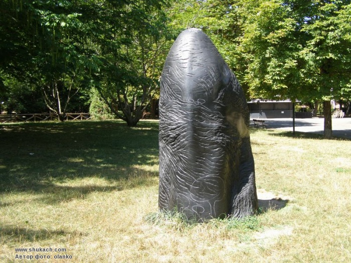 Розташована прямо на траві, на березі ставка, це велика скульптура в п’єтра-серена, витонченої роботи. Вона являє собою «своєрідне природне джерело життя».