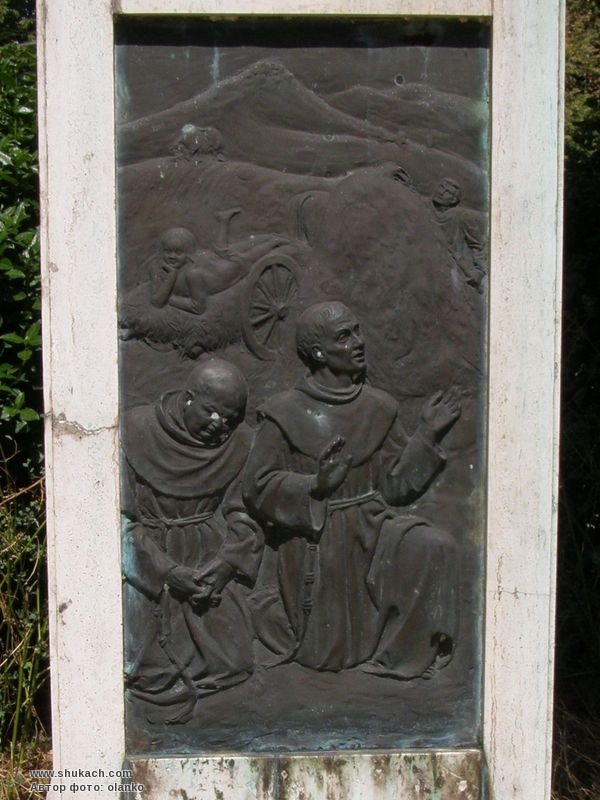Бронзова скульптура на кам’яному постаменті встановлена у 2000 році. На бронзових барельєфах, закріплених на гранях постаменту, зображені епізоди з життя святого.