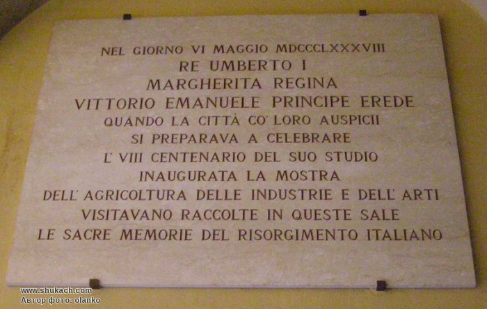 м. Болонья. Меморіальна дошка відвідуванню інституту королівською родиною.