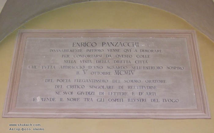 Встановлена на честь італійського поета, мистецтвознавця і політика Енріко Панзаккі, який провів тут останні свої дні і помер 5 жовтня 1904 року.
