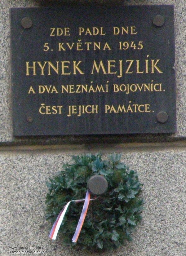 Дошка на честь жертв Празького травневого повстання Гінека Мейзлика та ще двох невідомих героїв, які загинули тут 5 травня 1945 року.