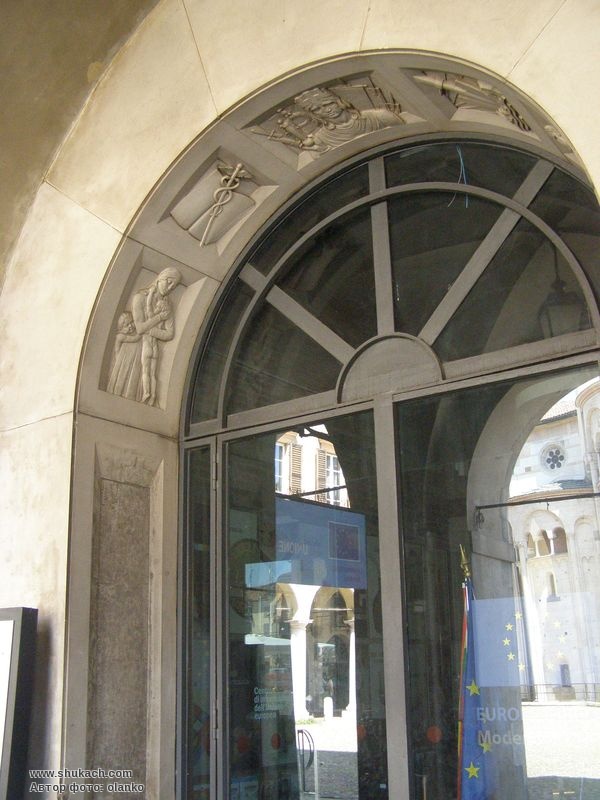 Під правим портиком мозаїка зображує старовинний герб Модени (XII