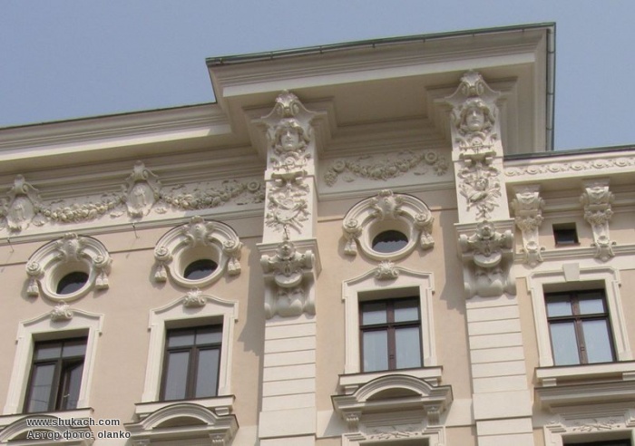 Під час будівельних робіт фасадне оздоблення було доповнено окремими скульптурними та орнаментальними деталями в стилі модерн. Опори сильно виступаючих карнизів в обох ризалітах прикрашені скульптурними рельєфами, які символізують скульптуру, живопис, промисловість та архітектуру. Оздоблення вхідного вестибюля характеризується будівельною пластикою в стилі модерн. Пам’ятка культури.