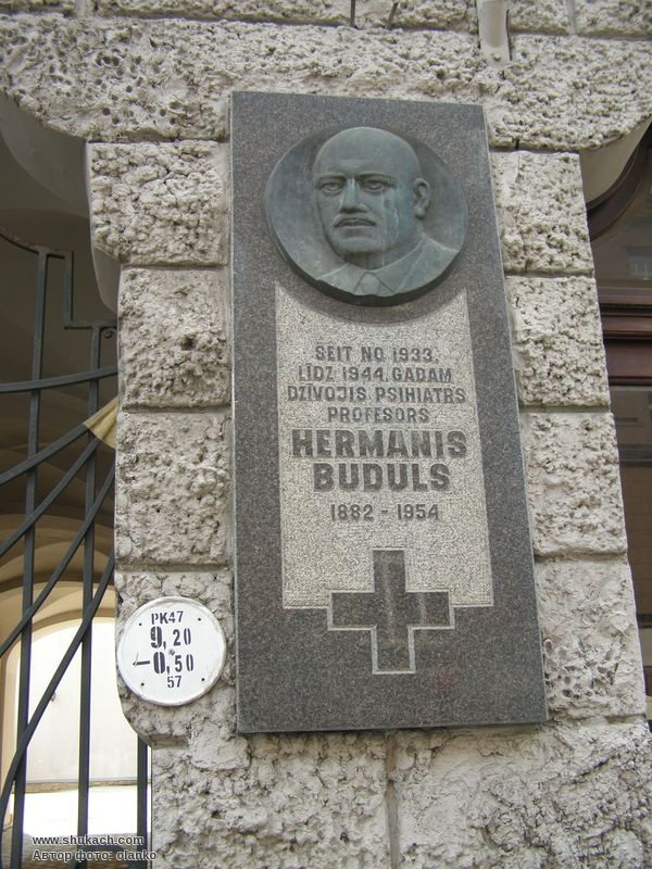 Встановлена у 1993 році на честь видатного лікаря-психіатра, професора Херманіса Будулса. У 1933-1944 роках він жив у цьому будинку. Бронзовий барельєфний портрет на кам’яній дошці.