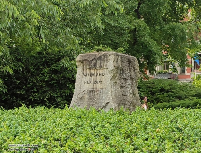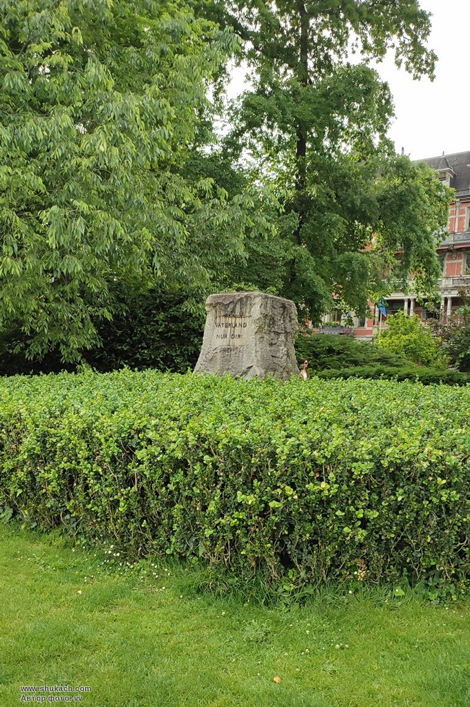 Кам'яний постамент має висоту 2,50 метра і квадратне планування 1 × 1 метр. Спереду — гасло швейцарського гімнастичного руху того часу: «ВІТЧИЗНА ТІЛЬКИ ТОБІ!», позаду: «ГІМНАСТИ ЦЮРИХА 1898 РОКУ».