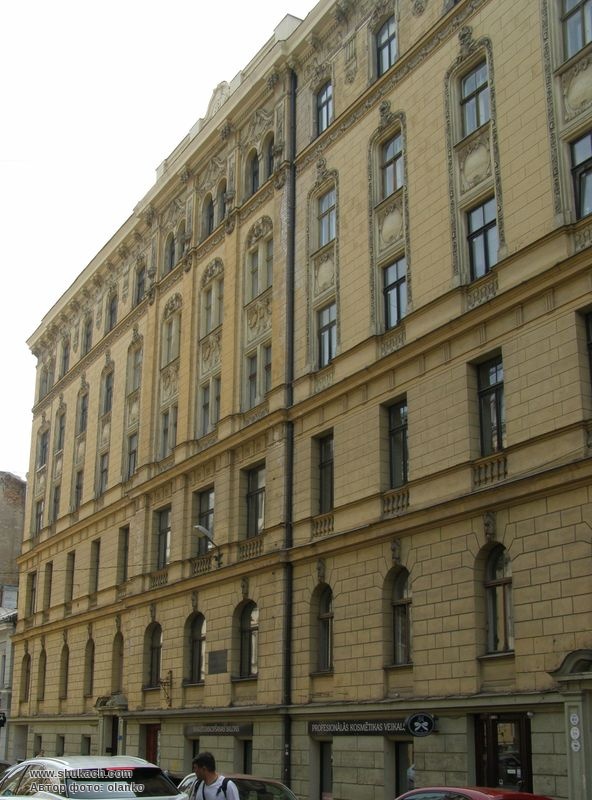 П’ятиповерховий з цокольним поверхом прибутковий будинок в стилі модерн зведений у 1903 році за проектом архітектора Яніса Алксніса. Власність Берзіня, пізніше Соколовської та Ванага. Фасад рустований, поверхи розділені карнизами. Вікна першого поверху аркового типу, прикрашені гротескними чоловічими маскаронами. Вікна верхніх поверхів з рельєфним обрамленням, маскаронами, рельєфними панно і гірляндами. Фасад завершений парапетом з рельєфним вензелем власника. Пам’ятка культури.