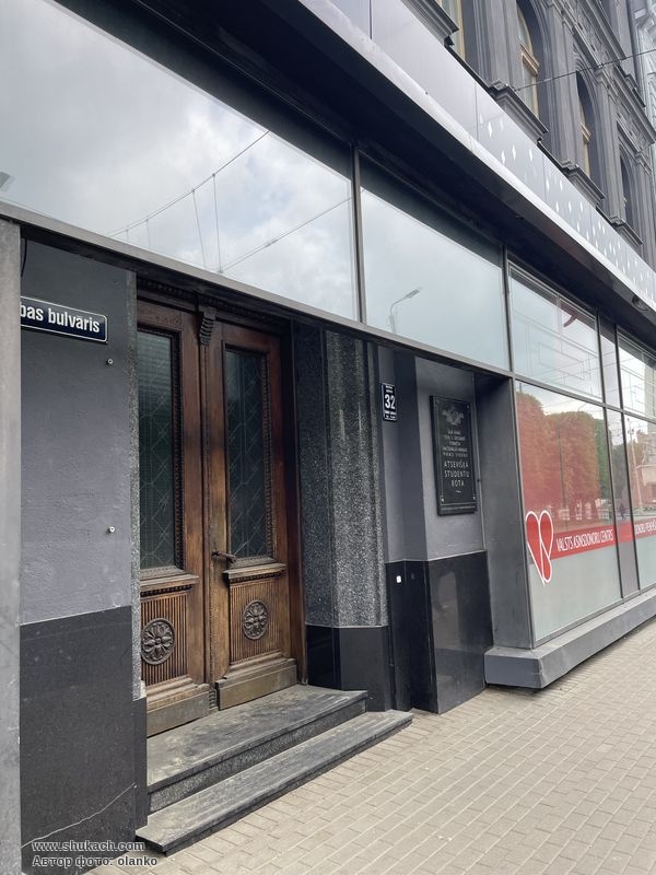 В цьому будинку у грудні 1918 року був сформований перший підрозділ національної армії Латвії – окрема студентська рота. Оригінальна дошка була знищена під час радянської окупації. За кошт латвійської студентської корпорації дошка відновлена у 2003 році.