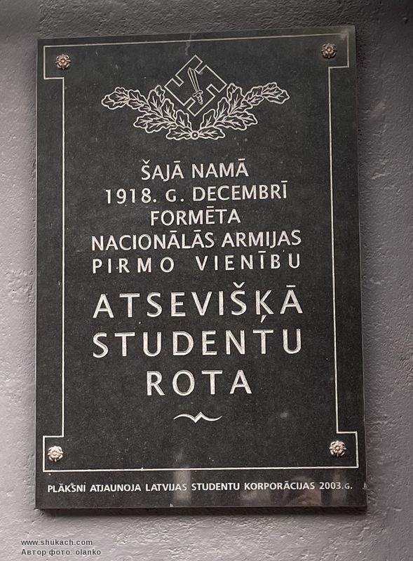 м. Рига. Меморіальна дошка студентській роті.