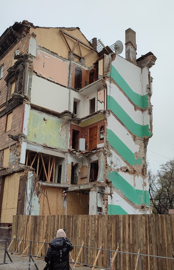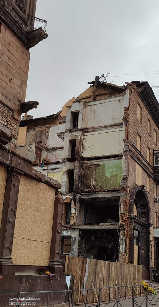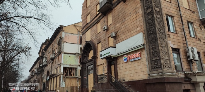 Дійсно видатна споруда на пр. Соборному, 151. Але на світанку 6 жовтня 2023 року росіяни ледь не знищили центральну частину міста – в архітектурну памʼятку поцілила ворожа ракета, зруйнувавши цілу секцію будинку та забрала життя її мешканців. Зараз роботи з повного відновлення будинку на фінішній прямій. І, як забудовник анонсував на початку робіт, багатоповерхівка стане навіть кращою ніж була. Бо окрім відбудови зруйнованої секції, весь будинок оновлюють технічно: замінюють в ньому всі комунікації, утеплюють фасад, проводять ремонт 15 підʼїздів та утеплення даху.